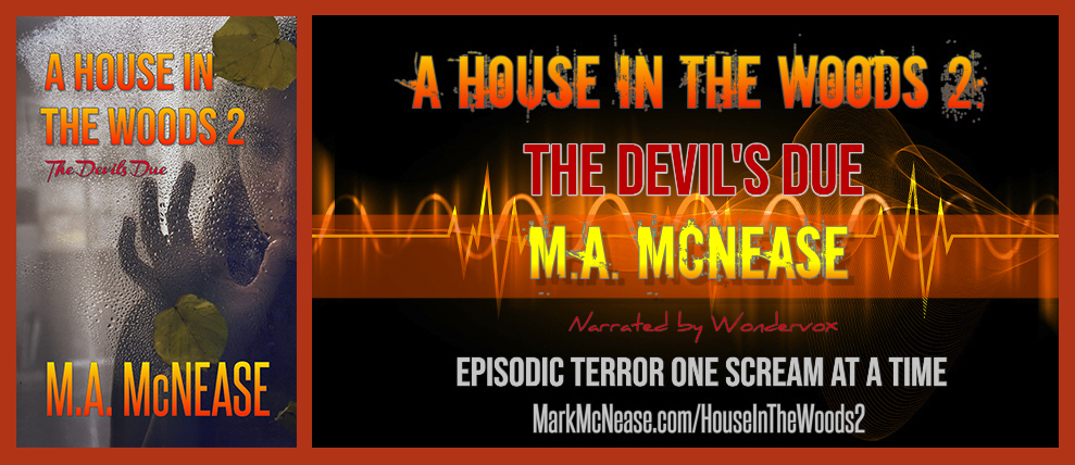 Welcome to the episodic audio edition of A House in the Woods 2: The Devil’s Due. Fasten your headphones and enjoy one new chapter each week. This is not an audiobook in the conventional sense, and no audiobook narrators living or dead were harmed in its production. This is a way for me to share some of my writing in an audio format. So settle back and enjoy the screams. You can find all the episodes here.